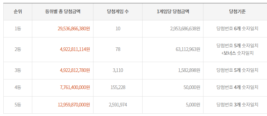 1등 : 29억 5368만 6638원